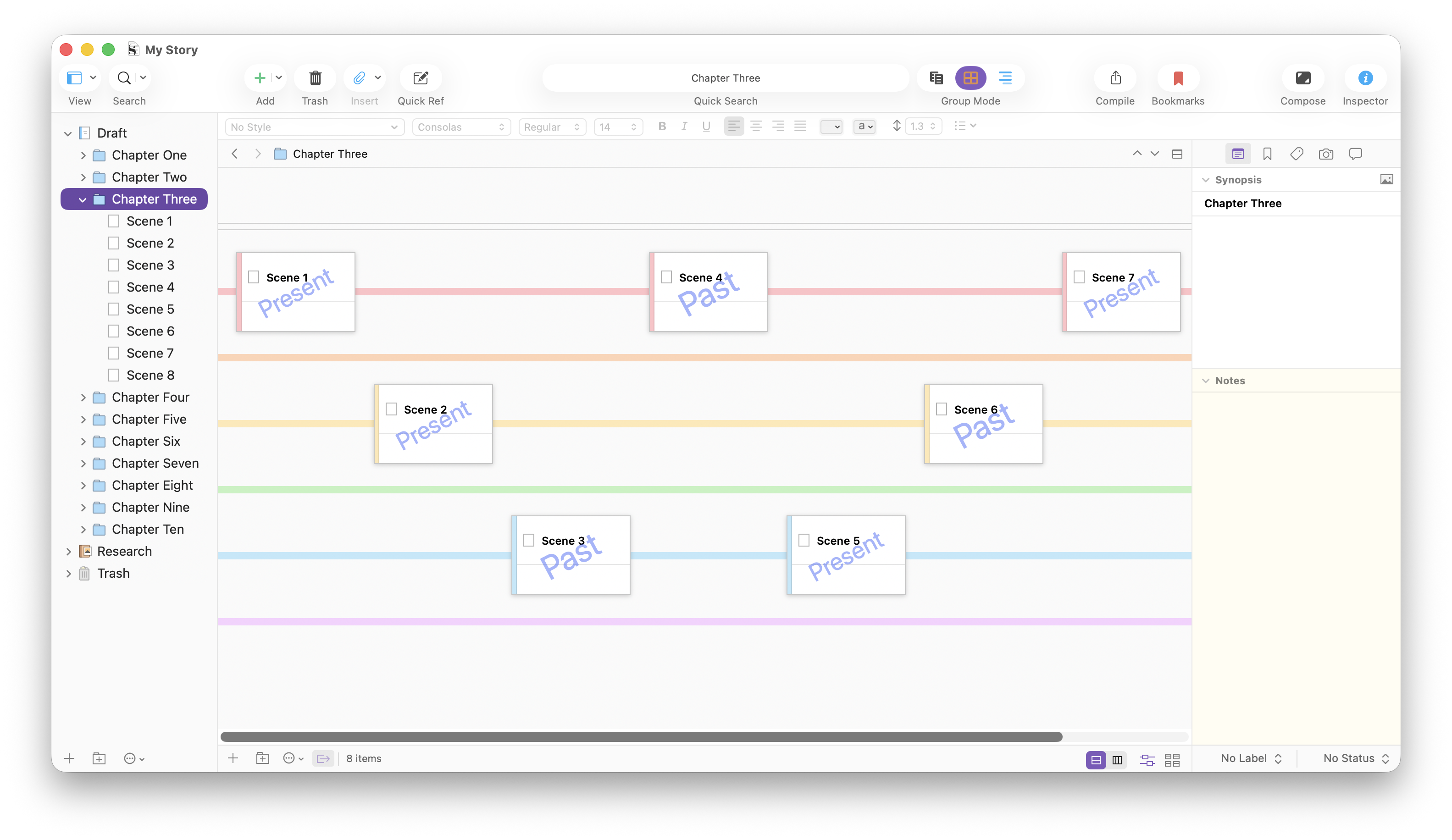 Working with multiple point-of-view characters or timelines can be demanding, but this approach can enrich a narrative by keeping readers on their toes. These approaches allow authors to tell stories in unconventional ways, and Scrivener can help you organize this type of project when outlining and a s you write.