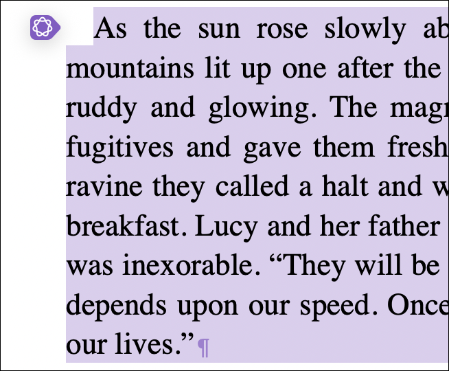 You may see an icon like this in the border of Scrivener’s Editor next to selected text. It looks a lot like the icons of generative AI apps: