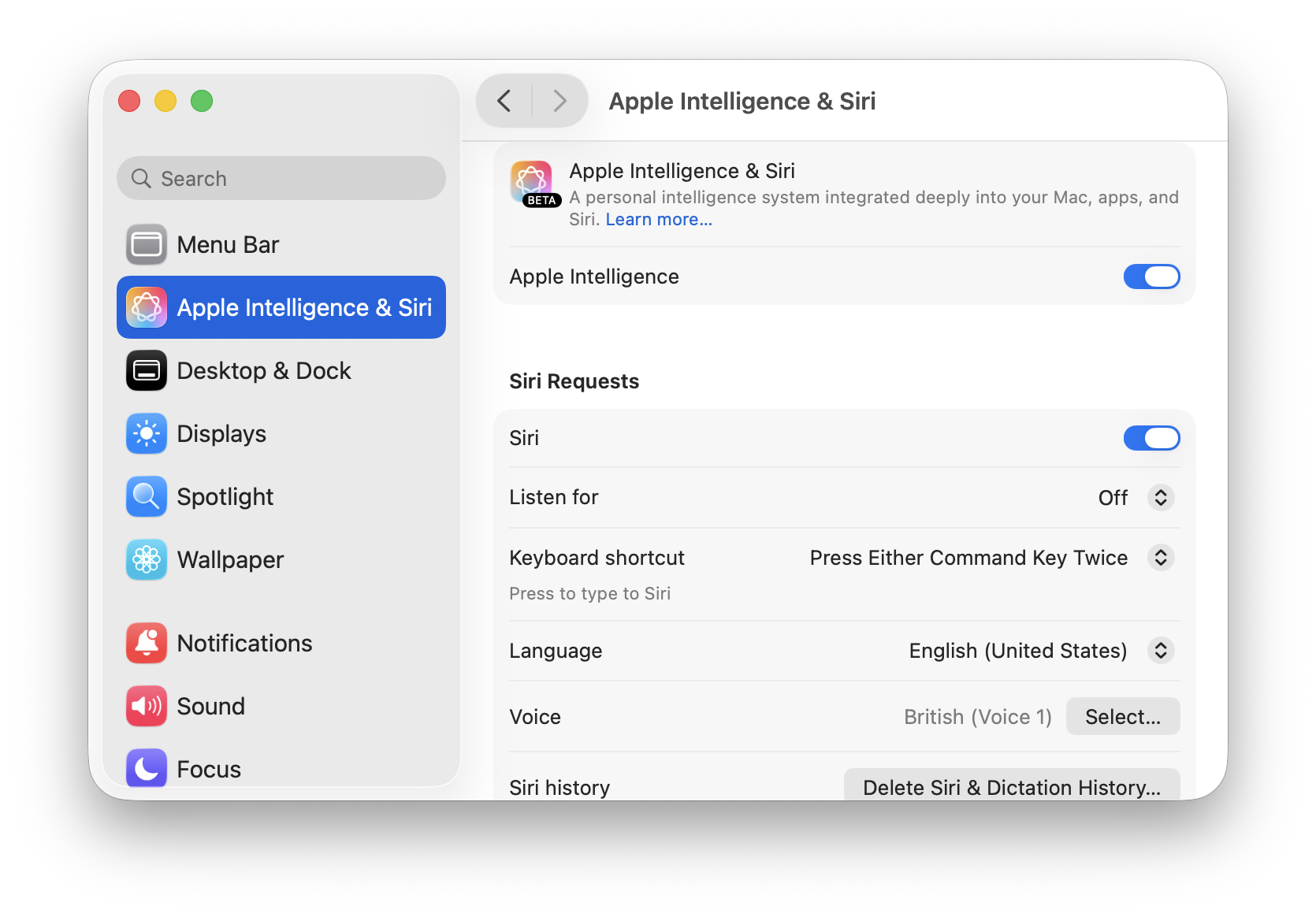 On a Mac, go to the Apple menu, then choose System Settings. Click Apple Intelligence & Siri in the sidebar, then toggle off Apple Intelligence.